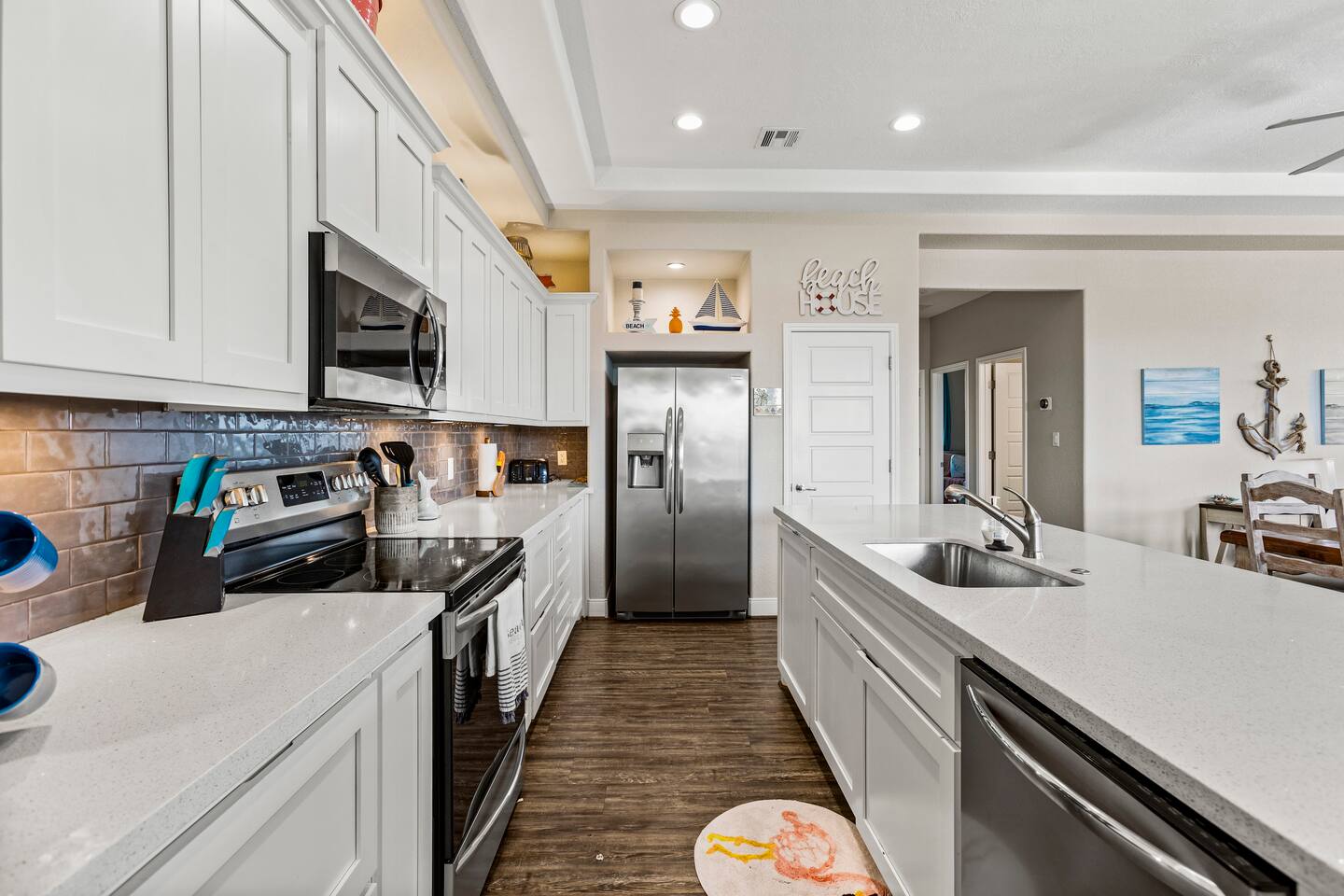 Shore Enuff is your new home away from home. Just 900 feet from the sandy shores of Crystal Beach, you can enjoy the feeling of sand between your toes. Early mornings are perfect on the front porch, where you can drink your coffee with a beautiful beach view. With this open floor plan, your family will feel like they have plenty of space, while still feeling connected. The kitchen comes ready with all cooking tools needed to keep everyone's appetite satisfied